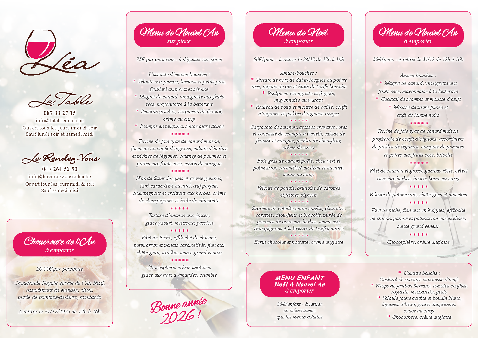 Venez profiter des menus d’exceptions préparés par nos chefs pour des fêtes merveilleuses en famille ou entre amis…